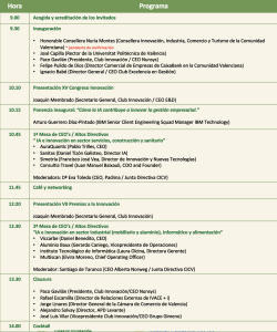 En el XV Congreso de Innovación organizado por el Club para la Innovación de la Comunidad Valenciana contaremos con ponentes de primer nivel y de referencia en sus correspondientes sectores. Hablaremos sobre cómo la IA puede servir como herramienta para la innovación, y para ello contaremos con expertos de la materia que dividirán en dos mesas de diálogo los tópicos más redundantes sobre este tema. Para la organización del Congreso, contamos con el apoyo institucional del IVACE +i y Cámara de Comercio de Valencia, así como la colaboración de nuestros Partners, Asociación para el Progreso de la Dirección (APD), Fundación de Estudios Bursátiles y Financieros y Club Excelencia en Gestión. El Congreso se ha estructurado con la inestimable colaboración de un Comité Organizador, formado por varios miembros de la Junta Directiva de nuestro Club, y algunos directivos que los han representado. La ponencia inaugural versará sobre ‘Cómo la IA contribuye a innovar la gestión empresarial’, y será impartida por Arturo Guerrero Díaz - Pintado, IBM Senior Client Engineering Squad Manager / IBM Technology. La primera mesa de CEO’s / Altos Directivos, será moderada por Eva Toledo, co CEO de Padima, miembro de la Junta Directiva de nuestro Club, y Presidenta de El Círculo de Directivos de Alicante, y contaremos con primeros ejecutivos / altos directivos de AuraQuantic, Sanitas, Grupo Simetria y Consultia Travel. La segunda mesa, será moderada por Santiago de Taranco, Presidente de Alberta Norweg, y miembro de la Junta Directiva de nuestro Club, y tendrá como participantes a primeros ejecutivos / altos directivos de Viccarbe, Aluminio Baux, Instituto de Tecnológico de Informática y Multiscan.